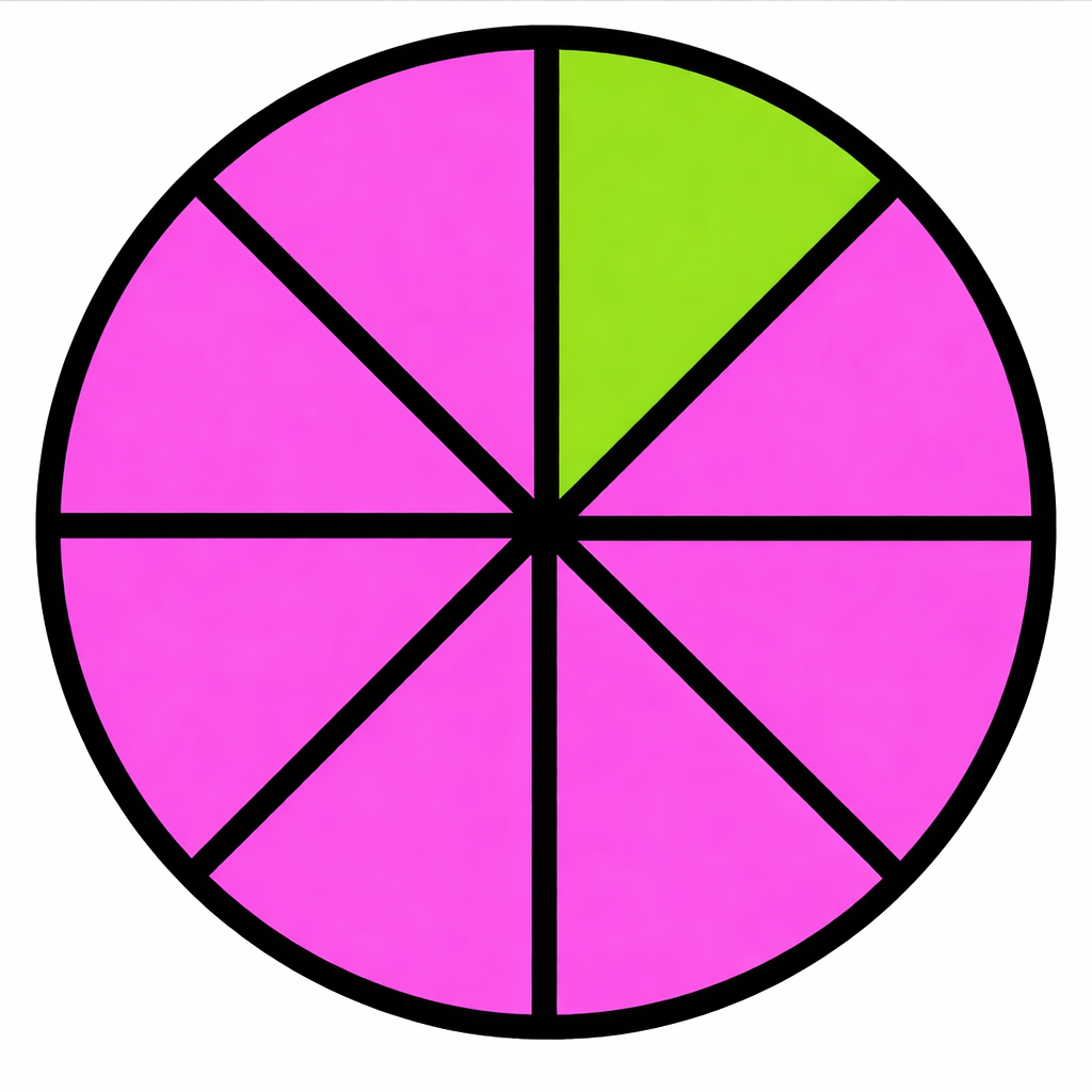 1 / 10 1. A pizza has 8 slices. You eat 2 slices. What fraction did you eat? A. 6/8 B. 1/8 C. 2/8 2 / 10 2. A cake has 4 slices. You eat 3 slices. What fraction is eaten? A. 2/4 B. 1/4 C. 3/4 3 / 10 3. What fraction of the circle is SHADED? A. 1/2 B. 1/3 C. 2/3 4 / 10 4. What fraction of the circle is SHADED? A. 2/5 B. 1/5 C. 4/5 5 / 10 5. What fraction of the toys are cars? A. 5/14 B. 7/14 C. 6/14 6 / 10 6. What fraction of the Circle is shaded pink? A. 1/8 B. 6/8 C. 7/8 7 / 10 7. A chocolate bar has 6 pieces. You ate 1 piece.What fraction is remaining? A. 3/6 B. 1/6 C. 5/6 8 / 10 8. What fraction of the Square is SHADED? A. 1/4 B. 1/16 C. 2/16 9 / 10 9. What fraction of the shirts are red? A. 6/11 B. 5/11 C. 4/11 10 / 10 10. The number above the fraction bar is _________ A. Denominator B. Numerator C. Fraction Your score is 0% Restart quiz